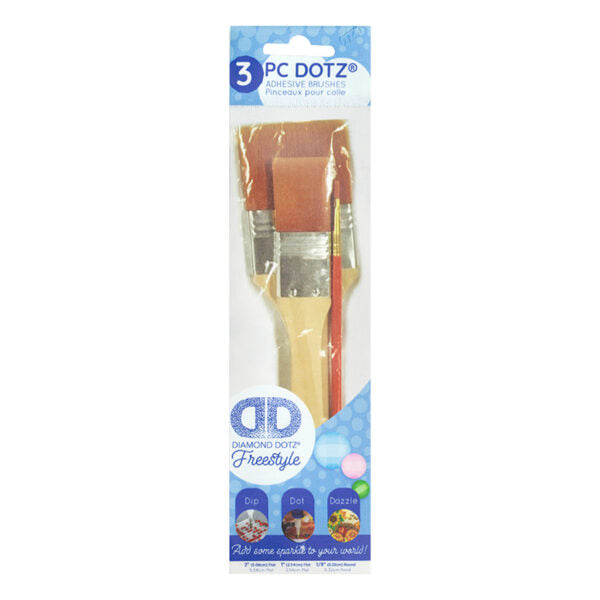 The Diamond Dotz Freestyle Deluxe Brushes come in a value pack of 3 different sizes in both flat and round bristle shapes. These brushes offer flexibility in covering large and small areas depending on your artwork. They work perfectly with applying adhesive and sealing your diamond paintings once complete.