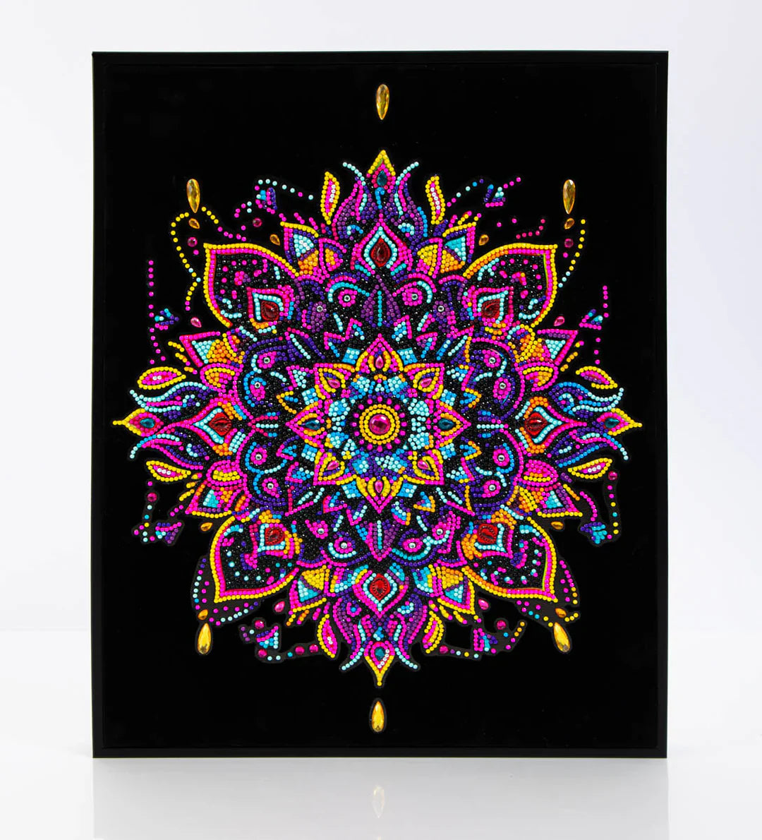 Brighten your space with the hypnotic beauty of the Diamond Dotz Neon Mandala Diamond Painting Kit. This kit features a unique diamond painting innovation: bright neon Dotz placed on a soft velvet-like flocked black background. Designed for fans of Diamond Painting Kits for Adults and lovers of colourful diamond art this radiant mandala bursts with neon colours and meditative symmetry.