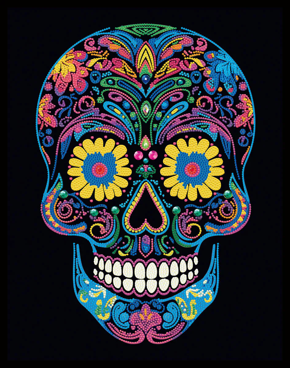 Bring vibrant tradition to life with the Diamond Dotz Neon Sugar Skull Diamond Painting Kit. This kit features a unique diamond painting innovation: bright neon Dotz placed on a soft velvet-like flocked black background. This electrifying design blends Day of the Dead flair with dazzling colour perfect for fans of Diamond Painting Kits for Adults and colourful diamond painting.